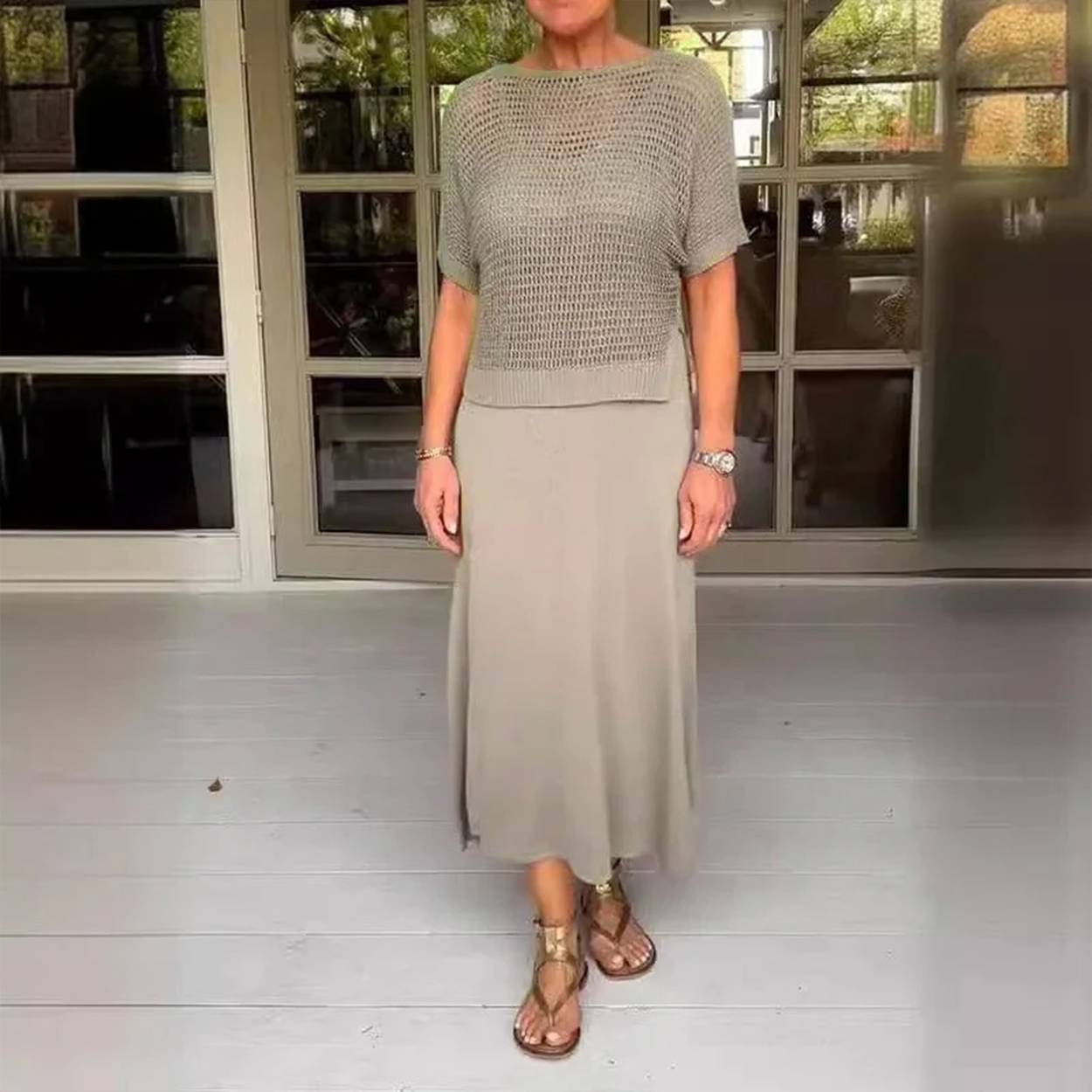 Elevate your everyday look with the Alma™ Elegant 2-Piece Set, designed to bring together breezy comfort and timeless sophistication. This chic combo features a perforated, short-sleeve top paired with a long, flowing dress—ideal for everything from daytime errands to evening dinners.