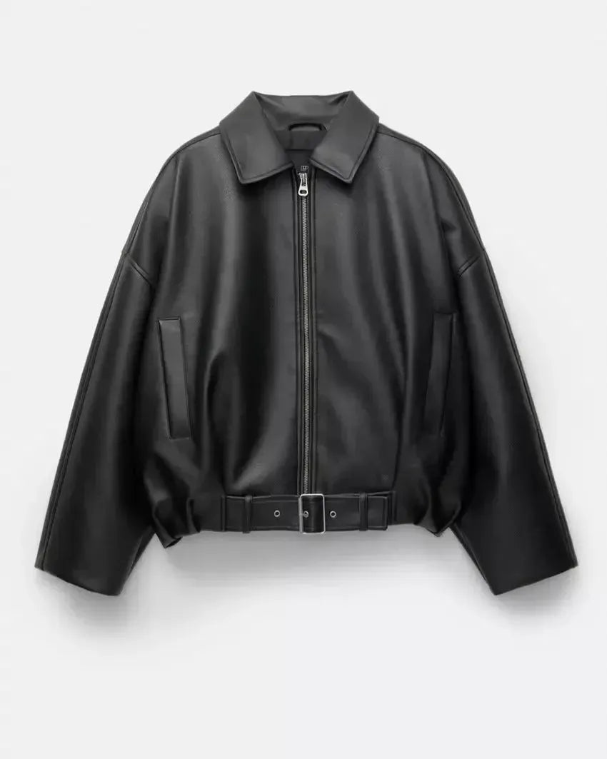 Arvella™ I Vegan Leather Jacket with Belt