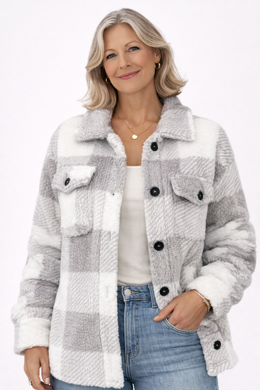 Martina – Stylish Fleece Jacket is the definition of soft elegance. Made from luxurious fleece, it features large plaid patterns that provide a warm and fashionable look without unnecessary weight.