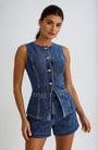 The Helen Denim Set blends relaxed summer style with clean, structured details. Featuring a button down gilet and matching shorts, this set offers a coordinated look that's equal parts comfortable and effortlessly cool. Perfect for weekend wear, vacations, or dressing up with layered accessories.