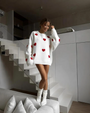 Fall in love with your everyday style. This oversized sweater is designed for both charm and comfort, featuring bold heart prints scattered across the soft knit fabric. Whether you're lounging indoors or heading out for a coffee date, this pullover adds a sweet, playful vibe to your look.