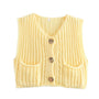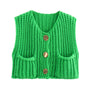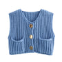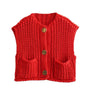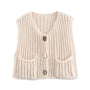 Women’s Knitted Button-Front Vest with Pockets - Casual Sleeveless Sweater Top