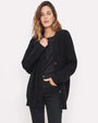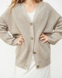 An oversized ribbed cardigan designed for layering and everyday comfort. This button-front knit features a relaxed fit, deep V-neckline, and long sleeves for a cozy yet effortless look.