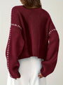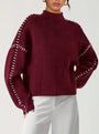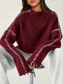 Women’s Whipstitch Knit Sweater – Contrast Stitch Oversized Pullover