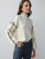 Minimalist yet bold, this knit sweater showcases whipstitch detailing for an elevated twist on a classic silhouette. With its oversized fit and dropped shoulders, the pullover delivers effortless comfort and standout style. A high neckline and elongated sleeves create a structured, slouchy look ideal for cool-weather layering. Whether styled with tailored pieces or casual basics, this sweater adds texture and statement appeal to any outfit.