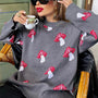 Women’s Oversized Knit Sweater - Mushroom Graphic Pullover